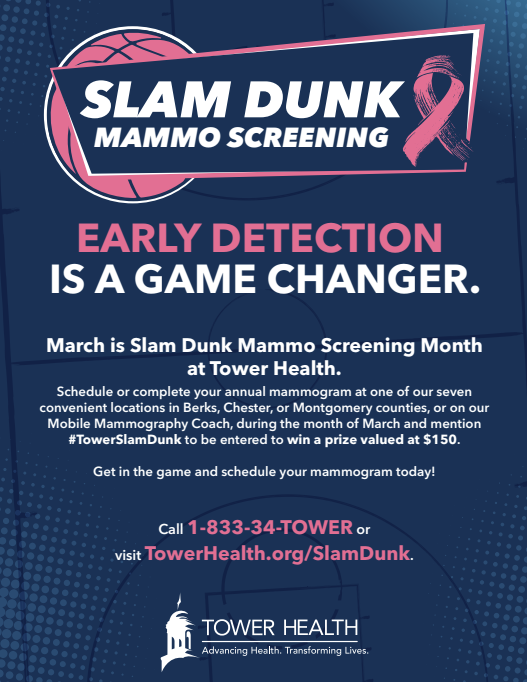 We are hosting our mobile mammography coach in Pottstown on March 24th from 9am-2pm. If you are due for your yearly mammogram in March, call to make an appt. You can walk right onto the coach, get your mammogram and continue on with your day! Call 1-833-TOWER to schedule today.